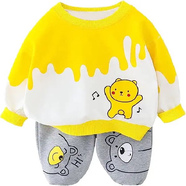 Boy’s Cotton Full Sleeves Sweatshirt with Pant Set in Yellow Color