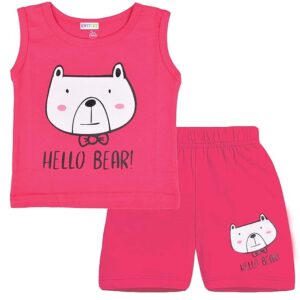 Baby & Kids Sleeveless T Shirts & Shorts Set (0-6 Months, Pink)